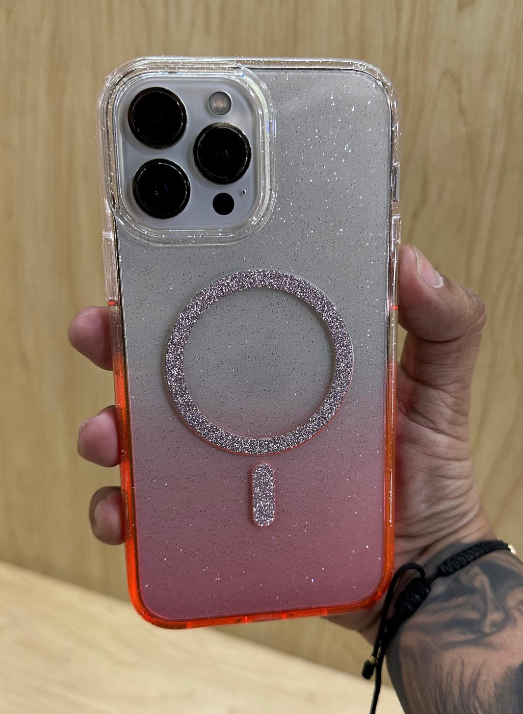 Case Transparente Magsafe Escarcha Naranja Iphone 13/14
