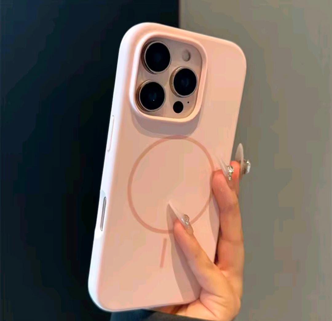 Case Magsafe Tarjetero En Cuero Rosado Iphone 16